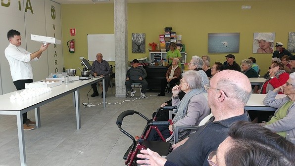 Ens ha fet una demostració i ens ha explicat pas a pas com fer merengues com els que fan a la seva pastisseria de Benicarló. Després, ens ha deixat uns quants al centre i tots els hem pogut provar a l'hora de dinar.