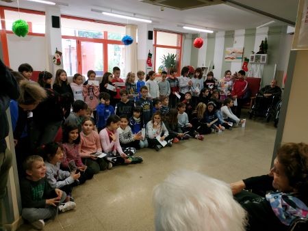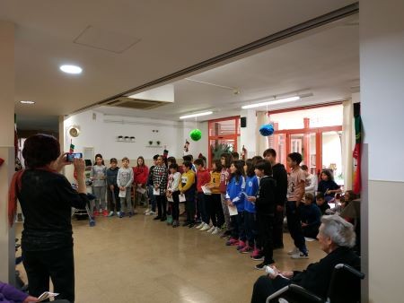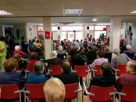 El passat dia 19 de Desembre vam tenir una de les visites més dolces de Nadal i, es que ens van venir a visitar els nens i nenes de 3r, 4rt, 5è i 6è curs de primària del Col·legi Mare de Déu de Montserrat de Les Borges Blanques i ens van cantar un petit repertori de nadales amb diferents llengües.