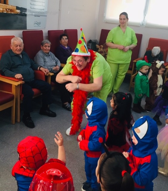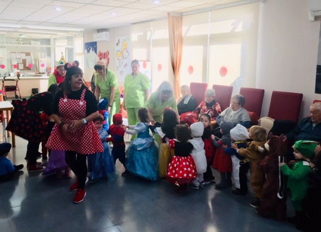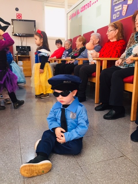 Aquest matí hem rebut la visita dels nens de la llar d'infants els patufets. Han vingut amb la il.lusió d'ensenyar-nos les seves disfresses. Avis i nens estaven tan contents!!