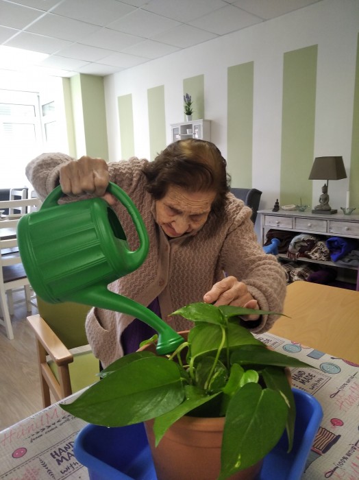 El Josep, jardiner durant mitja vida, va fer quasi tota la feina i al final, l'Esperança regava la planta.