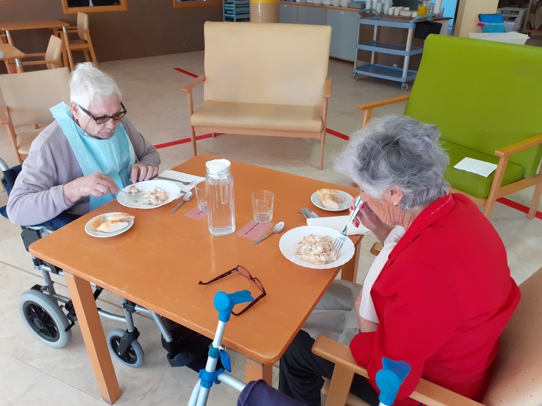Avuí un petit grup dels nostres residents ha baixat al jardí i a dinar al menjador de la planta baixa. Moltes emocions trobades!