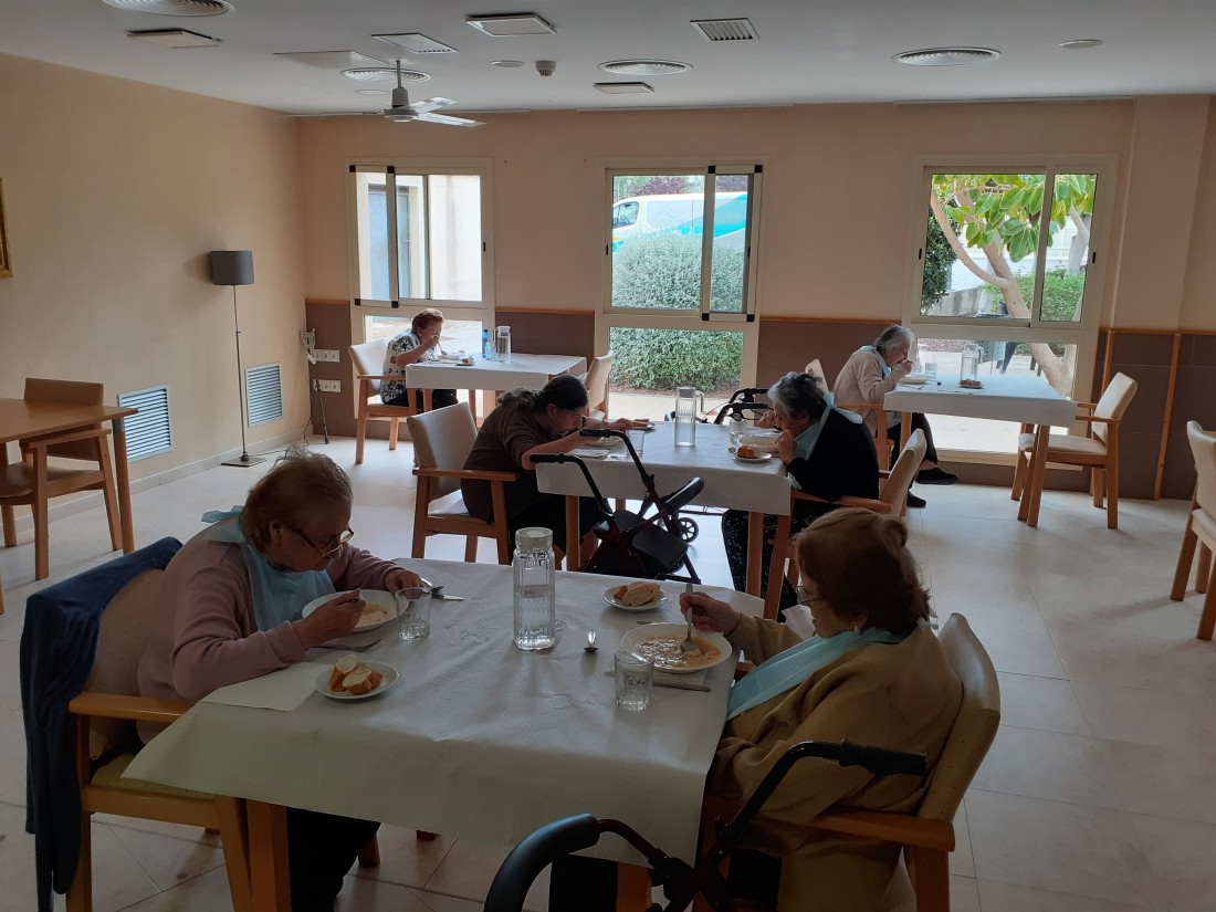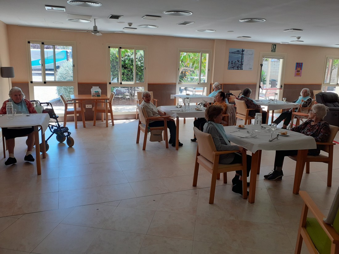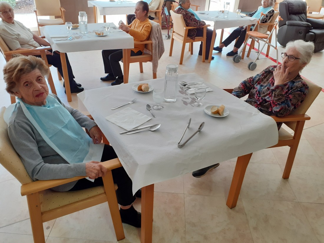 Avuí ha baixat un altre sector a dinar al menjador de la planta baixa. Anem alternant finsque puguin baixar tots.Altres han gaudit del jardí
