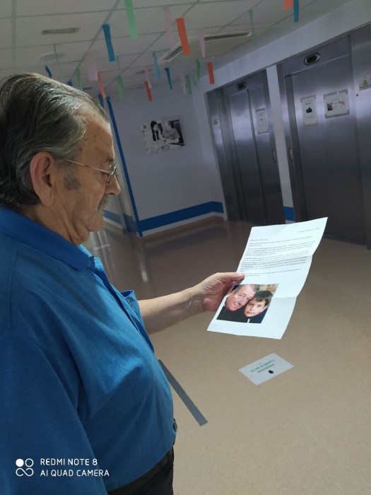 Aquí tenim a Antonio rebent la carta d'en Josep, l'ha llegit molt content i amb ganes de contestar-la i fer-se amics per carta!