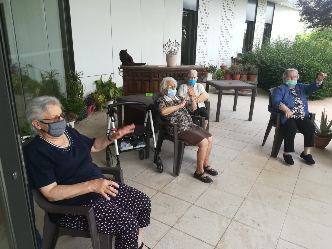 Avui seguim gaudint del sol al pati i també realitzem una mica d'exercici al ritme de la música.