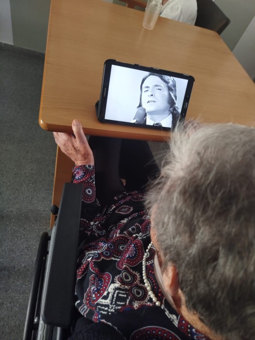 Realizamos taller de reminiscencia utilizando como recurso las nuevas tecnologías. En este caso, a través de la música y de los artistas favoritos que nuestros residentes escuchaban en su juventud son capaces de recordar diferentes vivencias de su vida...