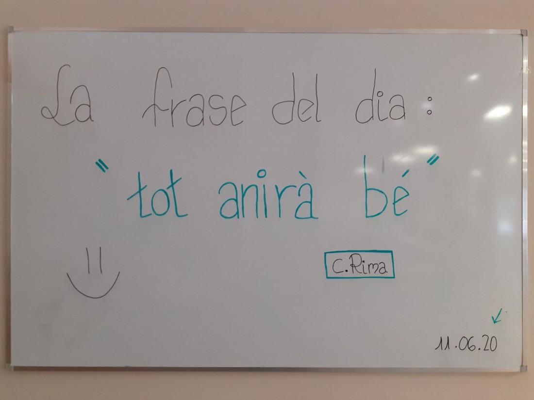 Avui em començat nova activitat. Cada dia un dels nostres residents ens diu una frase positiva, que li agradi, o allò que senti per escriure durant un dia a la pissarra del menjador. La frase que han elegit avui és: "TOT ANIRA BE" #frasespositives #positivisme #totaniràbé