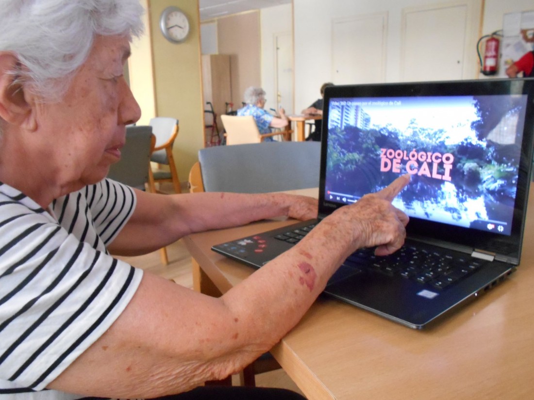 Avui us volem explicar com influencia positivament les noves tecnologies en relació amb l'entorn i les persones. La Carmen i l'Elizabeth conversen molt sobre les seves experiències i de com a canviat tot. Elizabeth que és colombiana li explica com és el seu país i la cultura. Carmen tenia curiositat per veure com és l'entorn on va viure la seva amiga. Llavors els hi hem facilitat l'ordinador portàtil i hem cercat imatges. També han interactuat amb vídeos de 360 graus amb els quals han pogut experimentar la realitat virtual. Aquest moment ha sigut preciós, ja que les dues s'han emocionat molt, en poder compartir cultura i vivències.