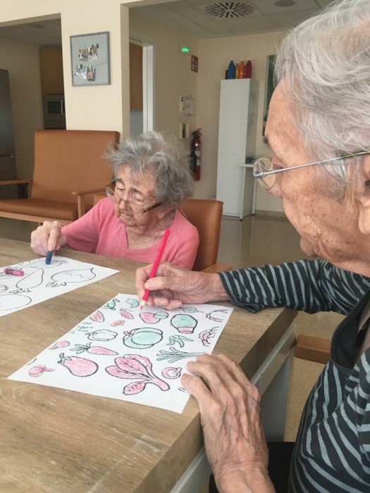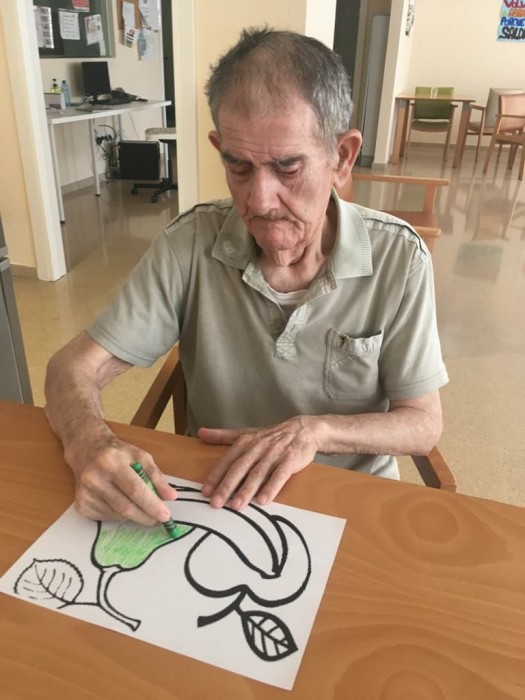 Ahir al menjador Sant Jordi vàrem treballar el llenguatge i la motricitat fina. Ho vam fer per temàtiques (fruites i verdures) anomenant-les i dient per a que van be... Després per a treballar mes la motricitat vam acabar pintant-les!