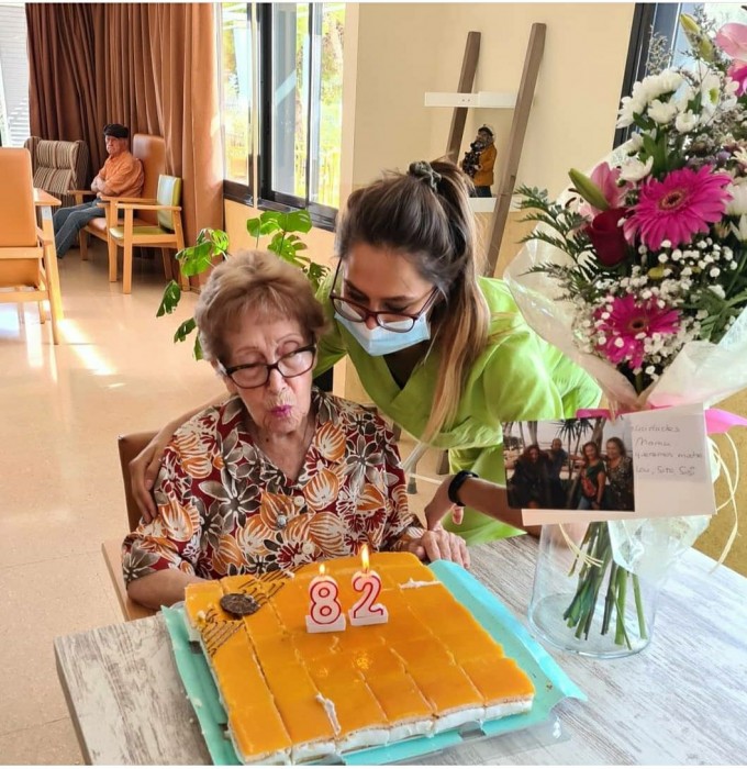 Avui hem celebrat!! La familia d'Asunción ha portat pastís per a tots i, a mes un ram de flors preciós amb una fotografia molt emotiva!!!