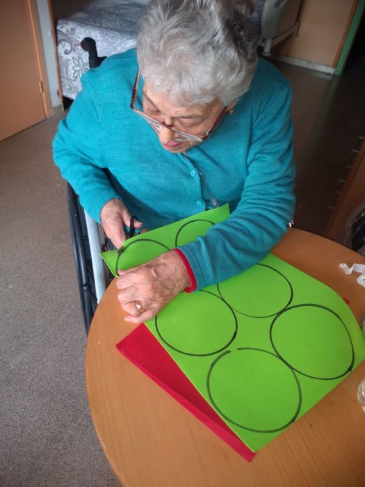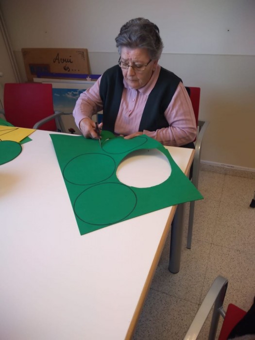 Aquest matí ha sigut molt entretingut! uns quants/es hem sortit al jardí a prendre el sol i a gaudir del nostre jardí nou; uns altres, hem estat retallant per preparar el nadal i per últim, a la segona planta han celebrat els 74 anys de la Sra Clemencia, la qual ens ha convidat a tots a un bocí de pastís!