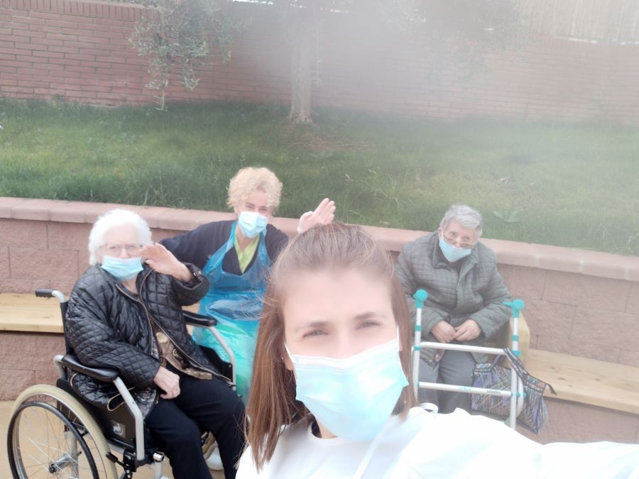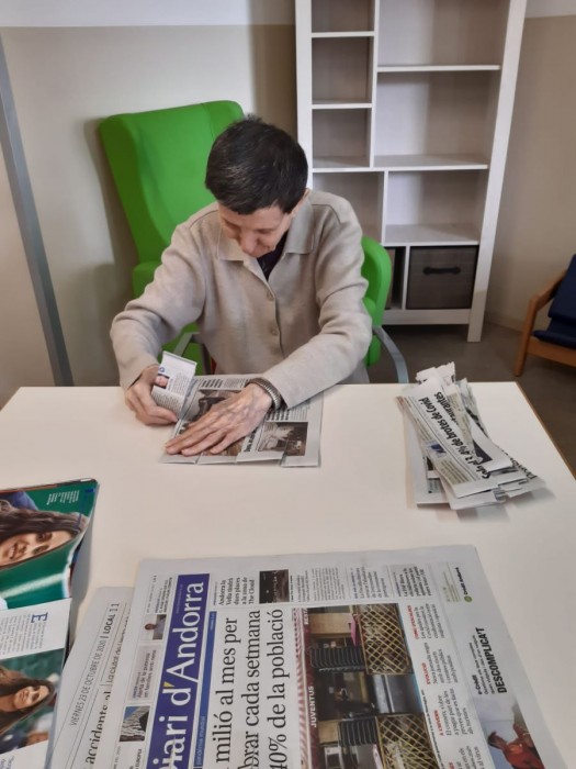 Avui al matí hem sortit també a veure el jardí nou de la casa en petit comitè i hem estripat diaris per fer manualitats més endavant.