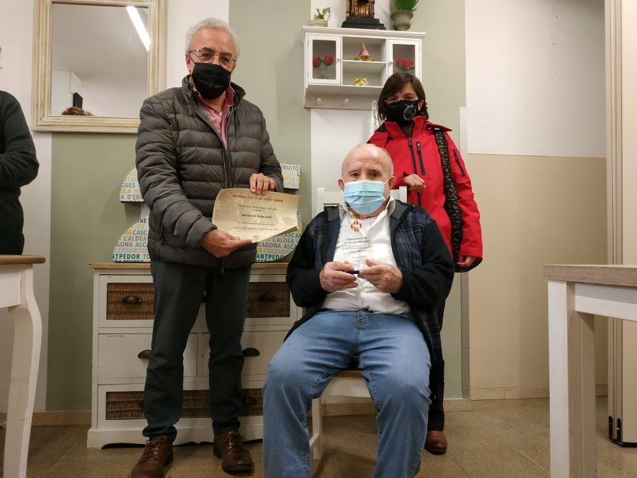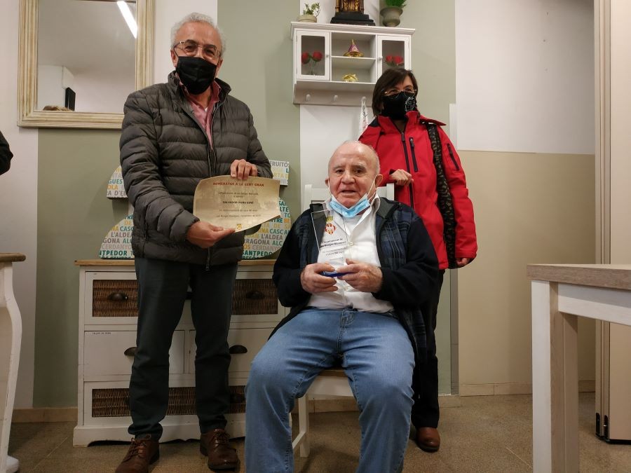 Avui al matí a vingut a visitar-nos l'alcalde de Les Borges Blaques per tal de fer entrega d'un diploma i una placa al Sr Salvador Pons pel seu 80è aniversari. S'ha posat molt content!