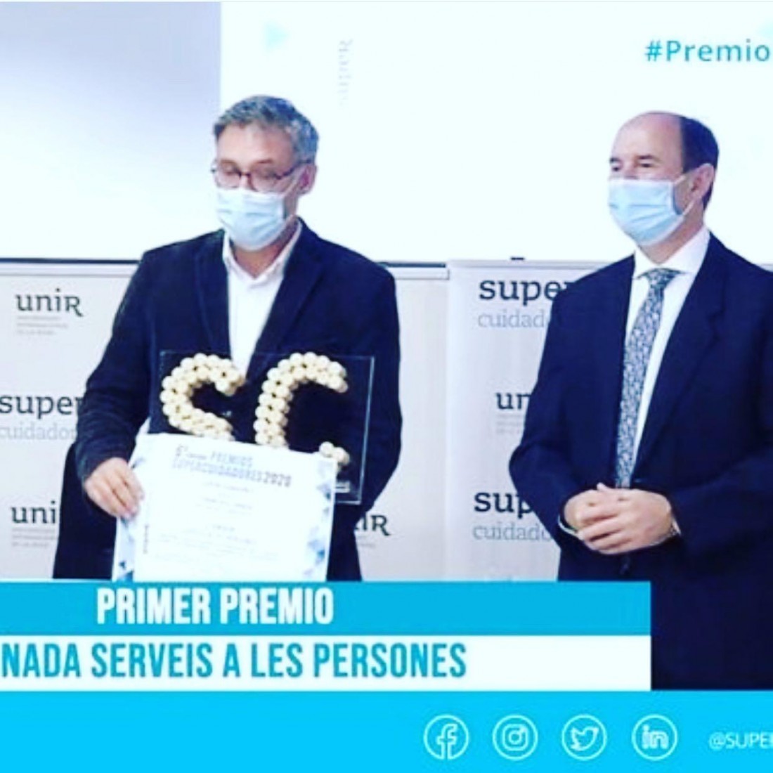 L'Onada Serveis guanya el premi Supercuidadores amb el programa de bones pràctiques i estratègies de comunicació amb les persones usuàries i les famílies durant la Covid-19. L'Arnald va recollir el premi en representació de tot l'equip de l'Onada amb un discurs molt emotiu.