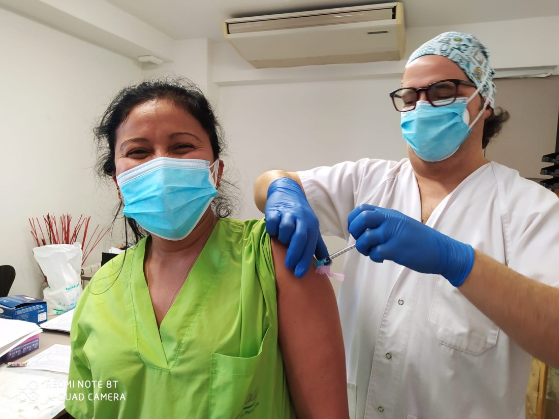 Avui les persones usuàries i els professionals de L'Onada Sant Vicenç de Castellet han rebut la vacuna contra el coronavirus. Aquesta és la primera de les dues dosis que rebran en les properes setmanes i el senyor Esteve Lafont, de 90 anys, ha estat el primer usuari del centre en rebre-la.