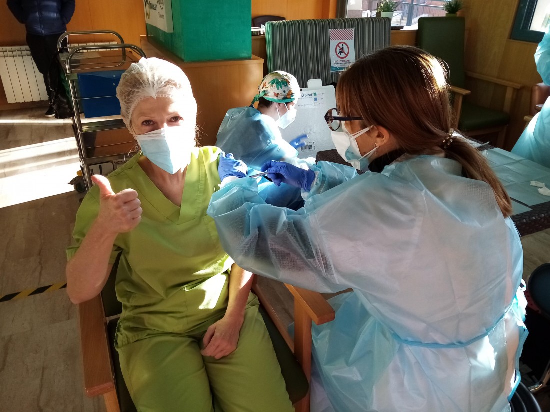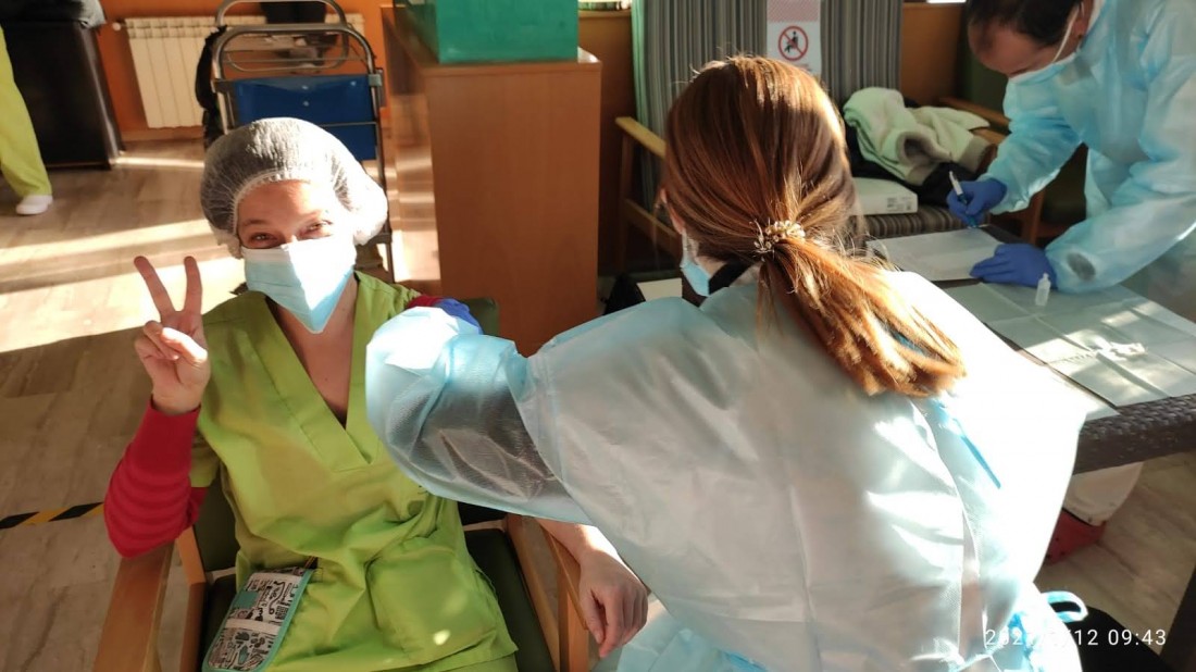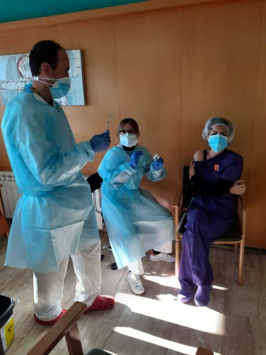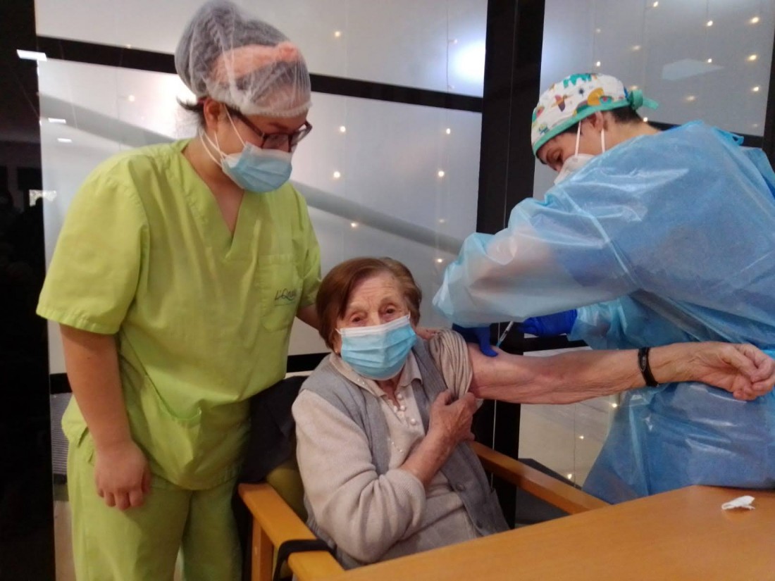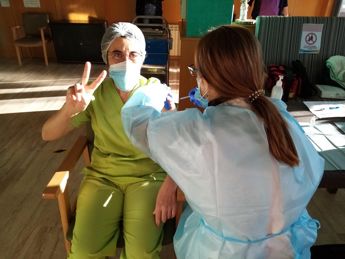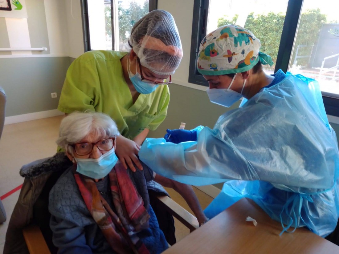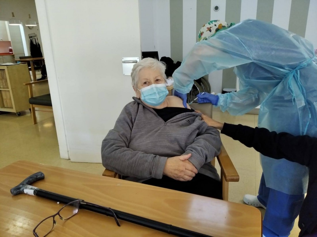 Aquest matí a L'onada Riudoms ens han vingut a vacunar contra la covid-19. L'equip i la majoria de les persones residents i usuàries de Centre de Dia, ja han rebut la primera dosi d'aquesta vacuna. La primera persona que s'ha vacunat ha estat la Directora del centre, Sole Menéndez.