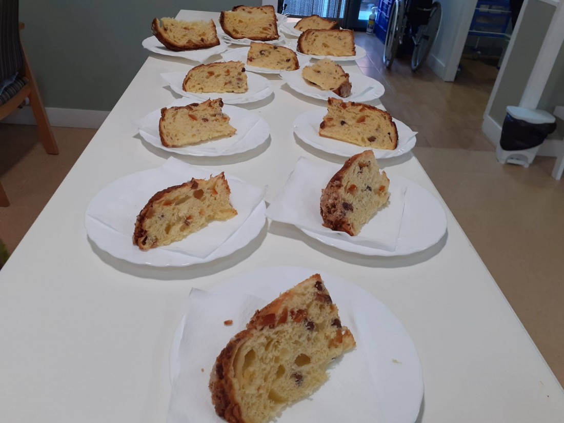 Amb motiu de celebració d'aquestes dues grans notícies, a la tarda vam fer un berenar especial per les persones residents, que van poder degustar el millor panettone d'Espanya, que ens van regalar des de la pastisseria Xocosave de Riudoms. Era boníssim, els residents van gaudir moltíssim!!