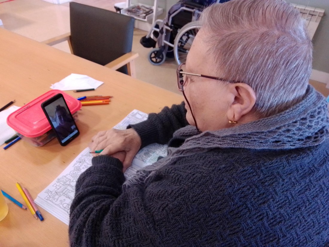 Aquest matí hem col·laborat amb el Treball de Recerca de la Meritxell, alumna de batxillerat de l'Institut Joan Guinjoan de Riudoms. Per tal de dur a terme la part pràctica del seu treball, ha realitzat un Taller d'Estimulació Cognitiva Digital amb algunes de les persones residents del centre.