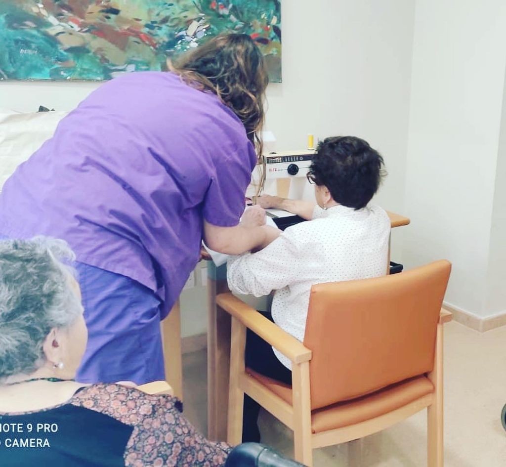 Iniciem el taller de costura tan esperat per les nostres avies cosidores gràcies a la Sílvia, la nostra fisioterapeuta que ens ha deixat la seva màquina de cosir, mireu que ve que ho fa la Paquita :)