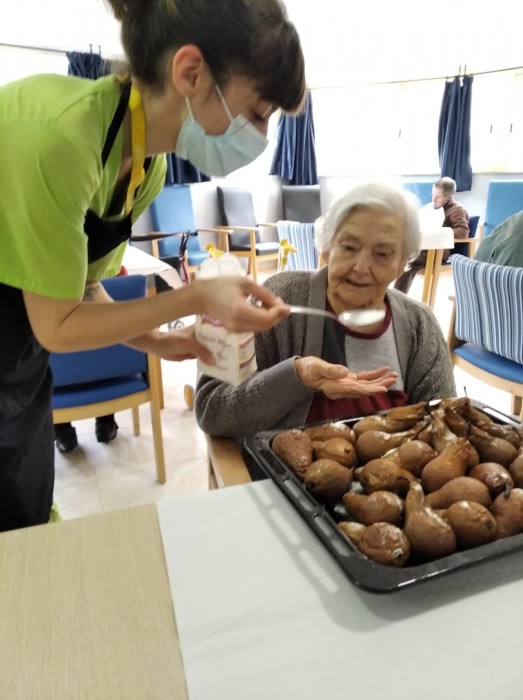 Avuí preparem les postres, peres al forn.