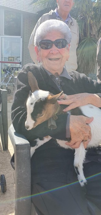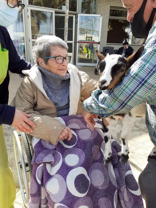 Avui els nostres residents han tingut una sorpresa al venir una cabreta a casa nostra, tothom ha tingut molt de goig de poder-la veure, tocar i sobretot ens ha fet riure i molt.