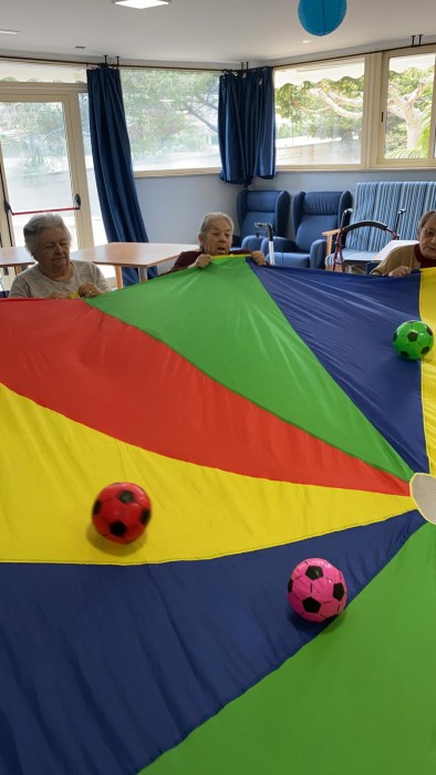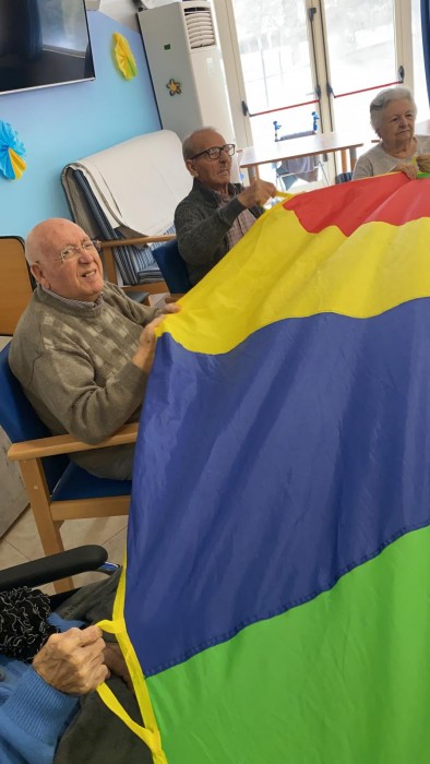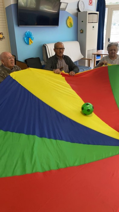 Amb el paracaigudes de colors a part de passar-ho molt bé, fomentem la mobilitat!!