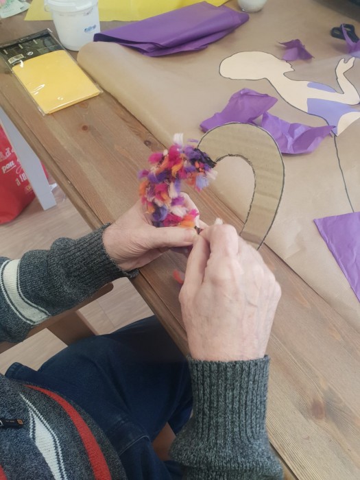 Hem estat fent la falda d'una noia amb colors de la primavera. L'Esperanza ja tenia ganes de pintar les lletres de la primavera.