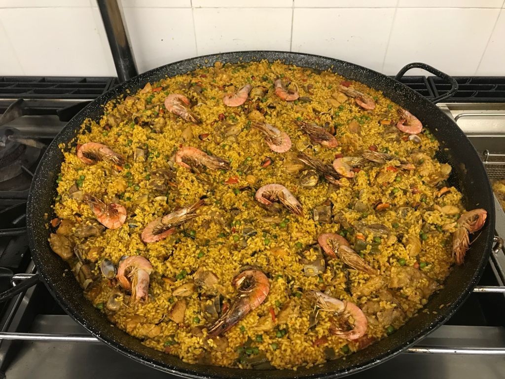 Avui amb el bon temps que feia, hem aprofitat per fer el vermut a la terrassa, i després un bon dinar. Tempura de calçots amb carxofa al forn, paella i de postre torrijes.