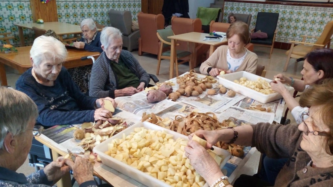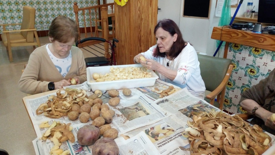 De tant en tant, a l'Onada Casserres animem a les nostres residents a fer feines com les que feien a casa, mireu com els hi agrada pelar patates!