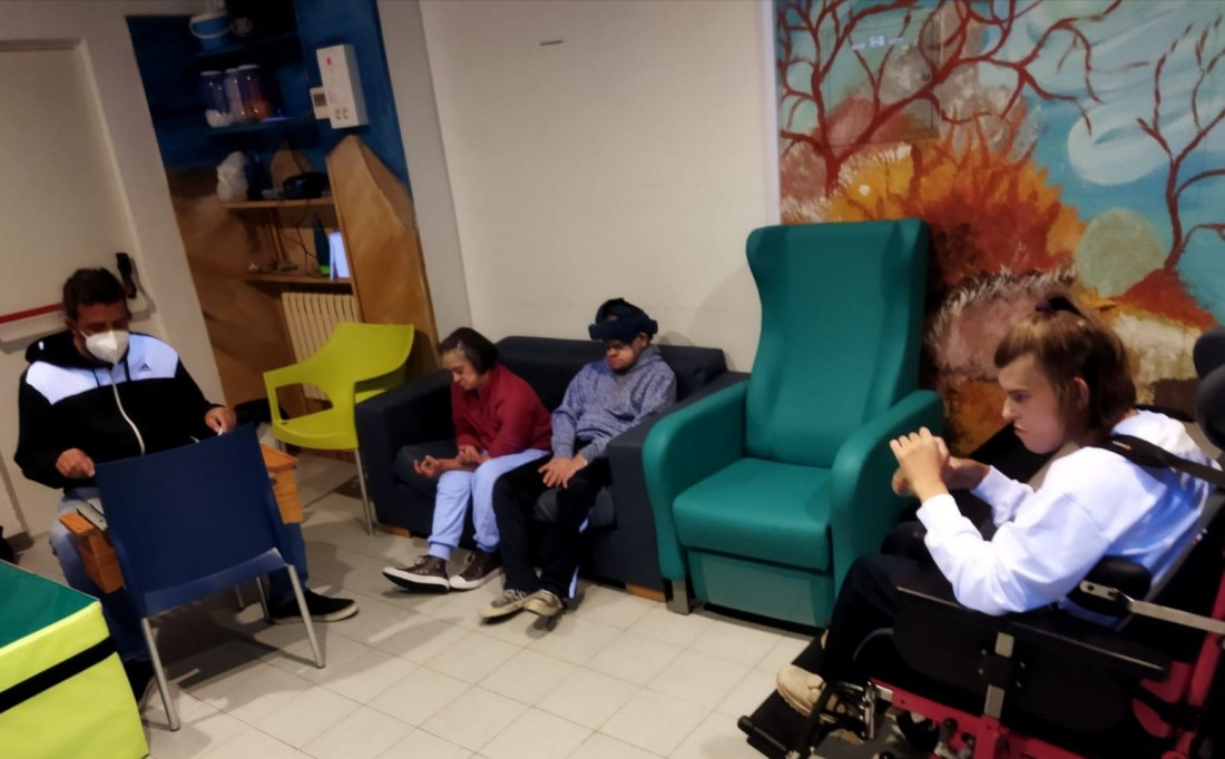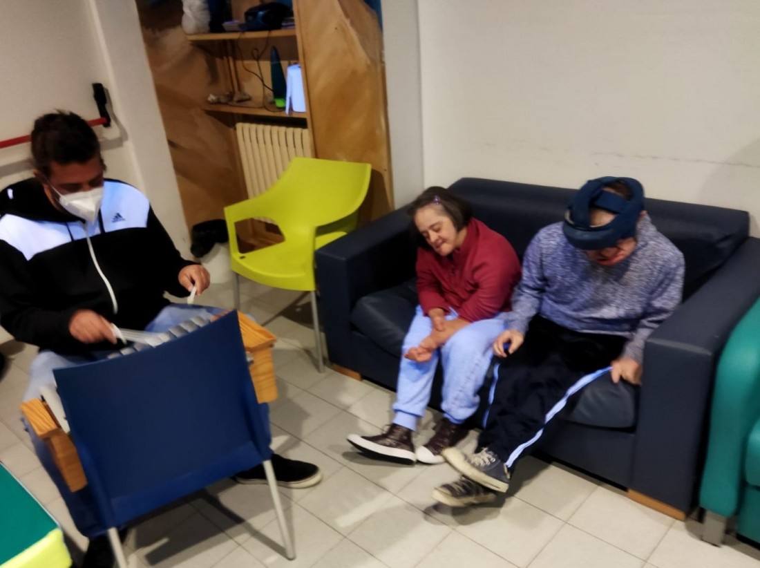 Les sessions de musicoteràpia són essencials pels nostres usuaris. Donades pel musicoterapeuta professional Seve Velasco, no només és treballen els estímuls i les sensacións, concentració i coordinacio; també objectius de Pai. Un treball grupal i al mateix temps individualitzat.