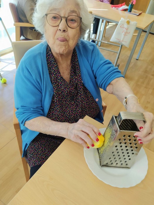 Els tallers de cuina agraden molt als nostres residents, aquesta setmana hem fet coc de poma. El resultat final és espectacular!!
