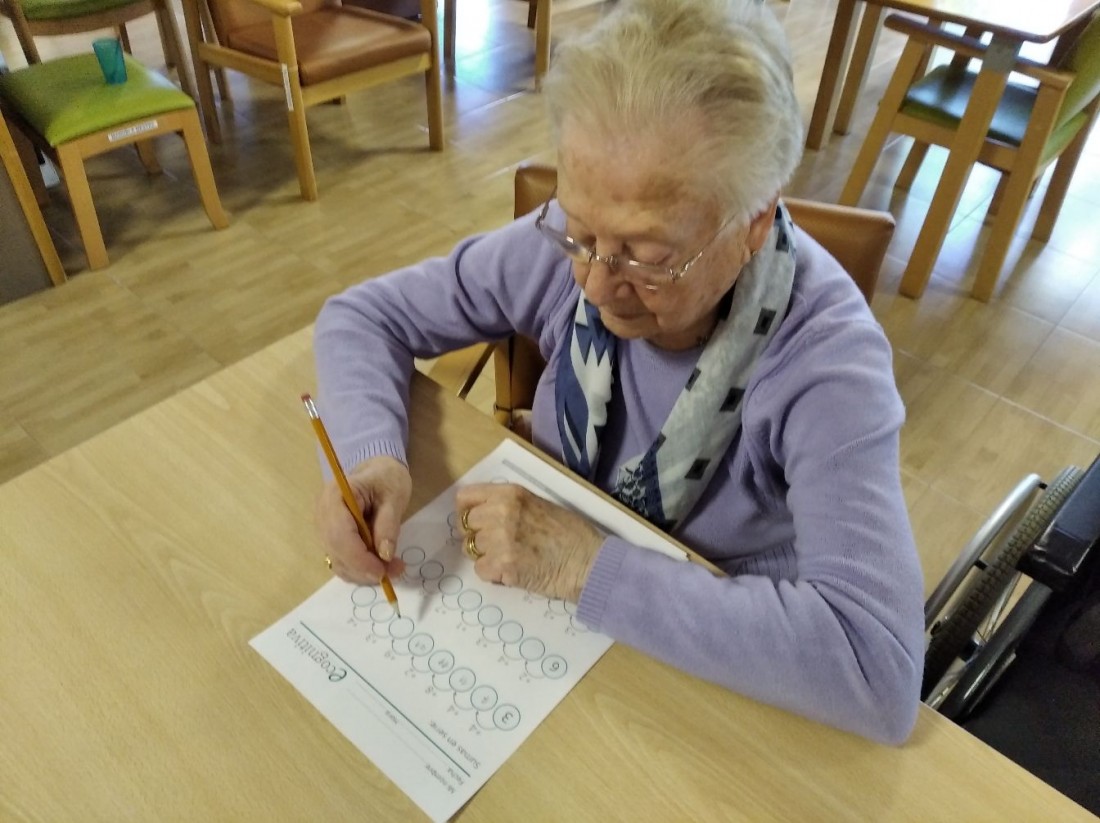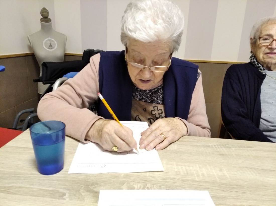 Totes les setmanes, dediquem un día a realitzar exercicis d'estimulació cognitiva escrits. Amb aquests treballem: la percepció, l'atenció, el raonament, la memòria, el llenguatge, l'orientació, etc.