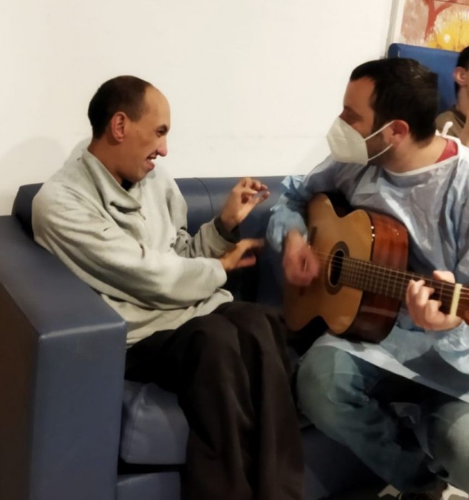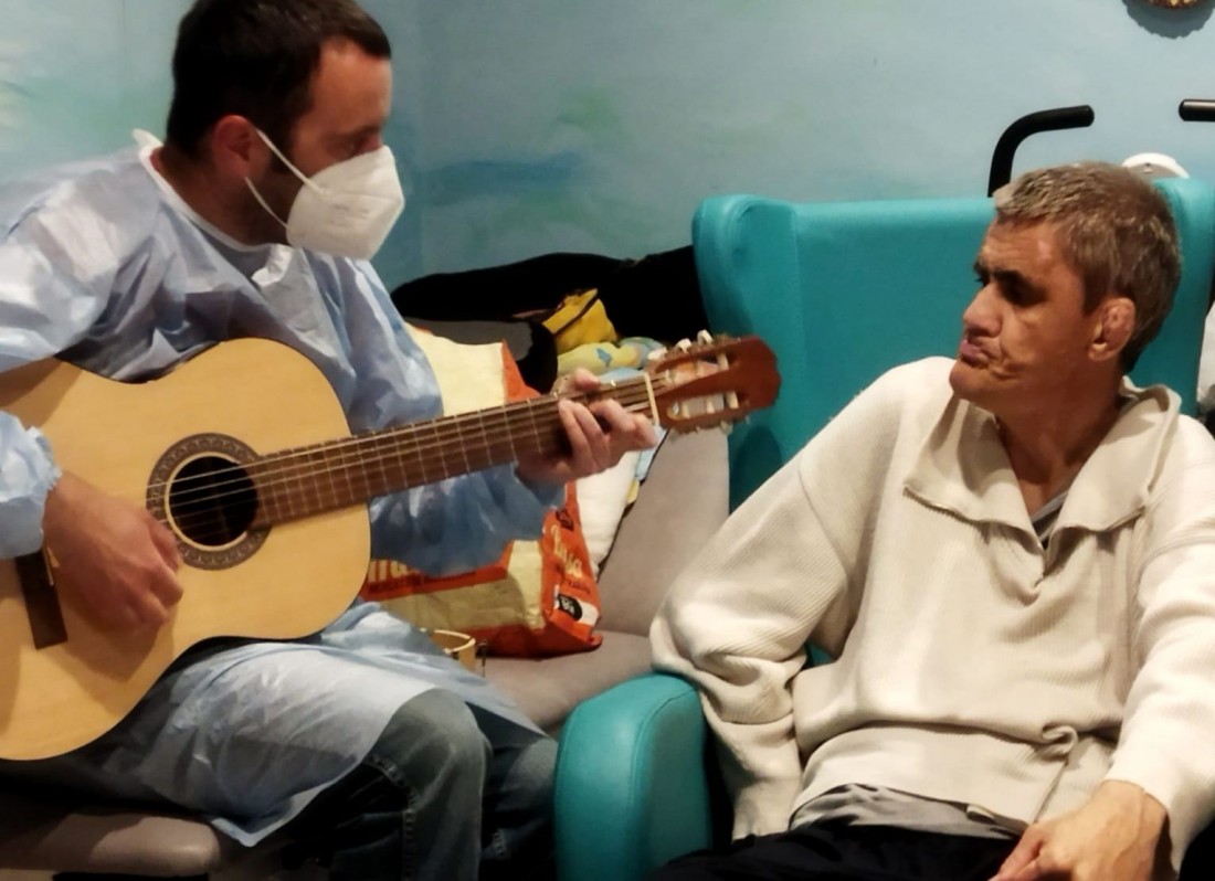 Tots els dimarts, Xavi Guinard, musicoterapeuta professional, bé a treballar les sessions amb els diferents usuaris. Una activitat on es sumen objectius de PAI a treballar.