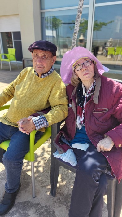 Avui fa un dia esplèndid, fa calor i molt de sol. Els nostres residents han fet les activitats al jardí i d'aquesta manera també han gaudit del sol de maig. Els hi expliquem constantment que la presa de sol, amb moderació i protecció millora el nostre estat de salut i augmenta la vitamina "D".