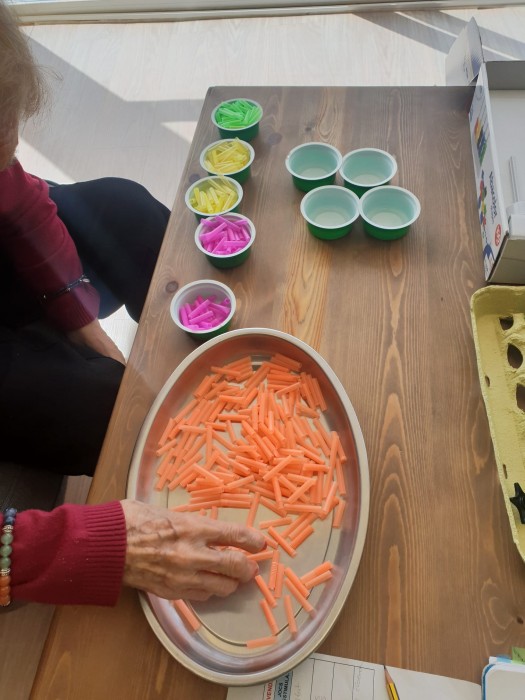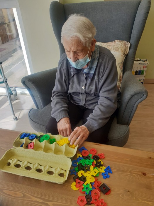 No parem mai, fem activitats de psicomotricitat fina: classifiquem colors, fem construccions,amb boles de paper de seda fem el pèl d'un dibuix...