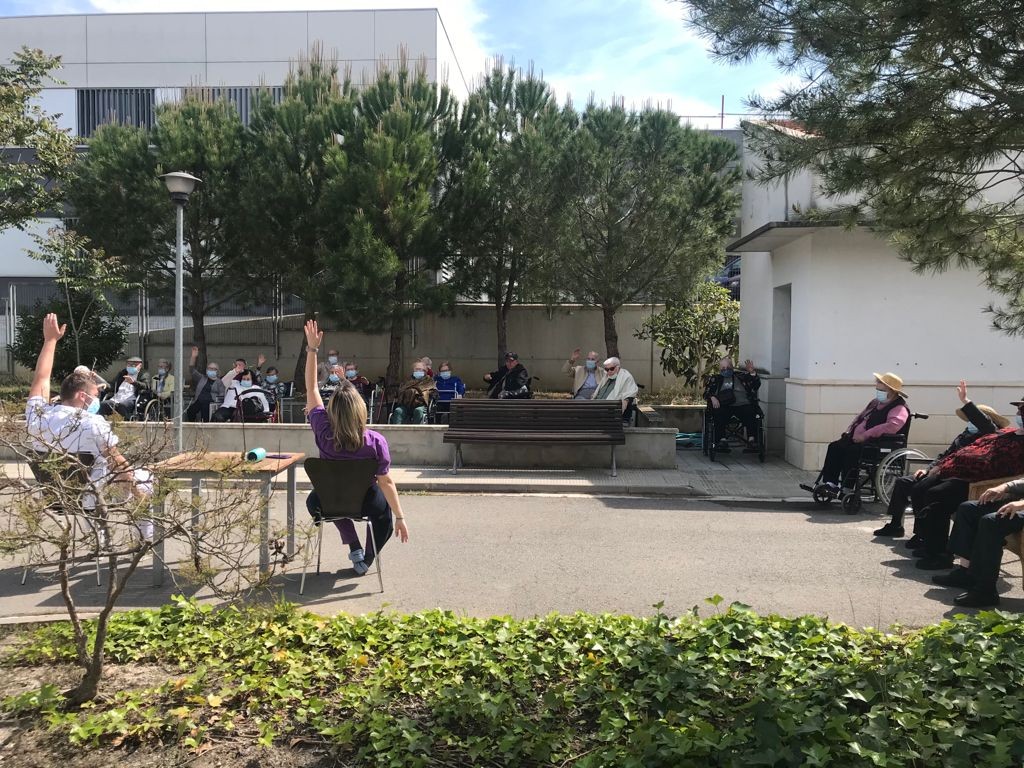 Quan surt el sol aprofitem per fer exercicis al nostre jardí.