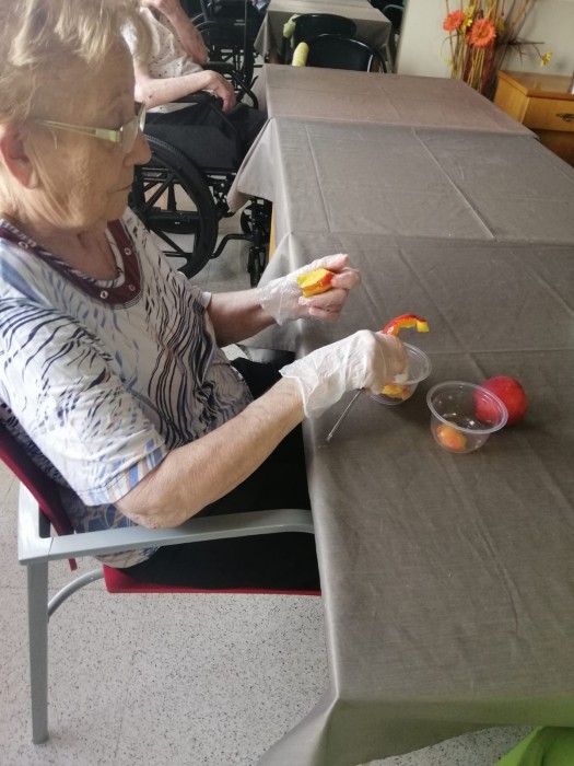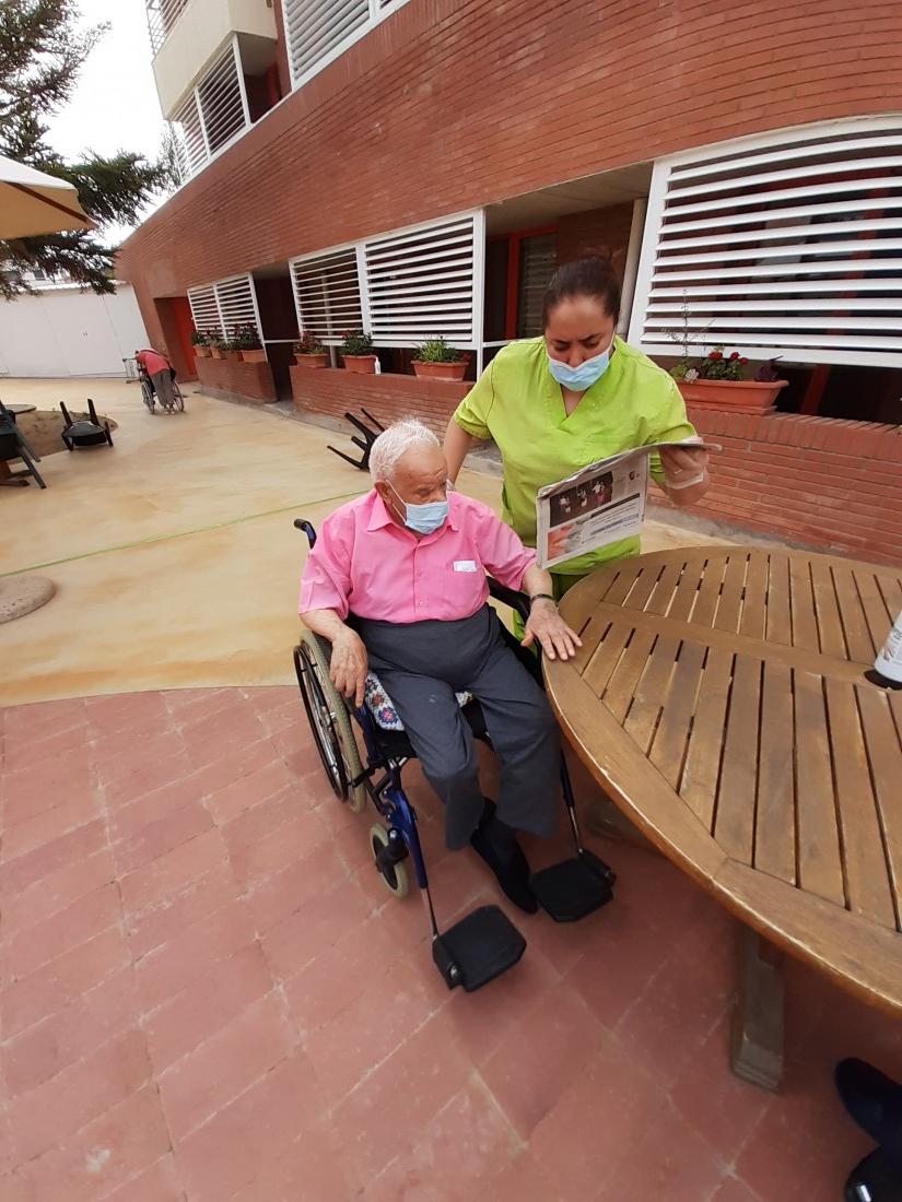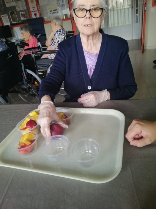 Aprofitant que ha afluixat una mica la calor, hem sortit al nostre jardi a prendre la fresca. També hem fet taller de pelar fruita.