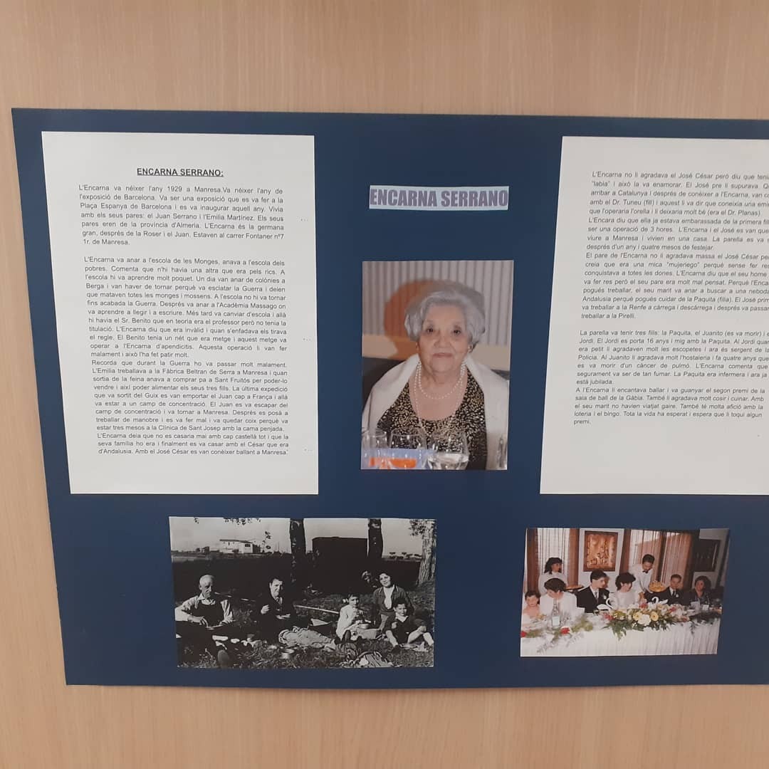 Seguim amb les activitats programades pel projecte de l'àvia protagonista. Pengem un plafó amb un resum de la vida de l'Encarna Serrano i unes fotos.