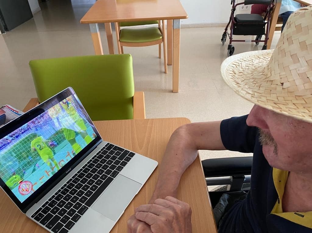 Avui la Berta ha fet molt content el Mariano portant el portàtil perquè pogués veure el seu estimat Atlètic de Madrid. Gràcies Berta!