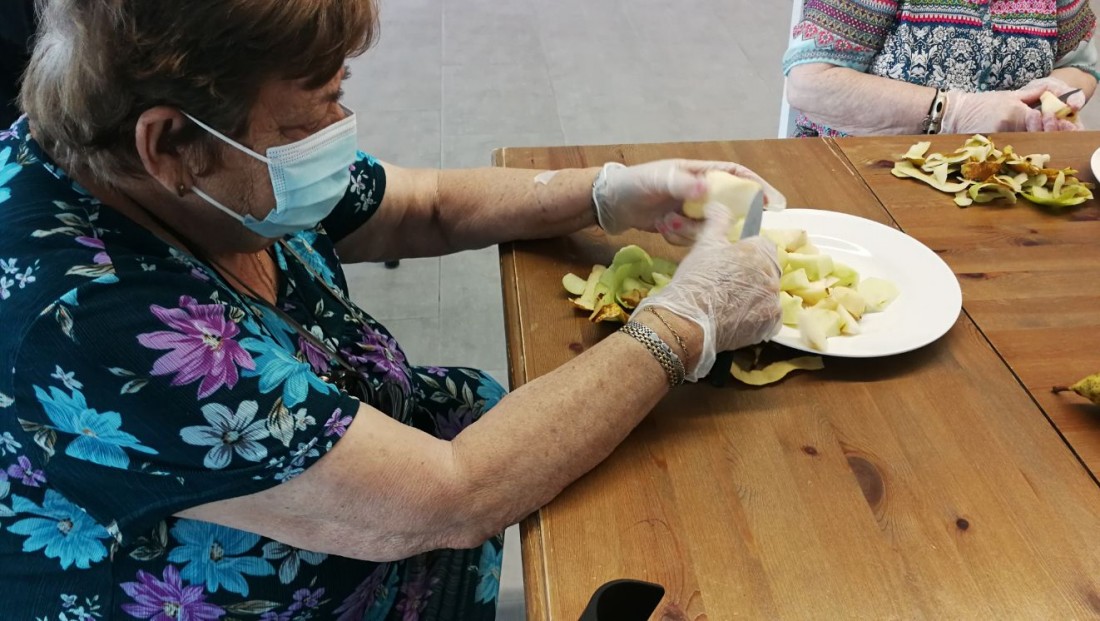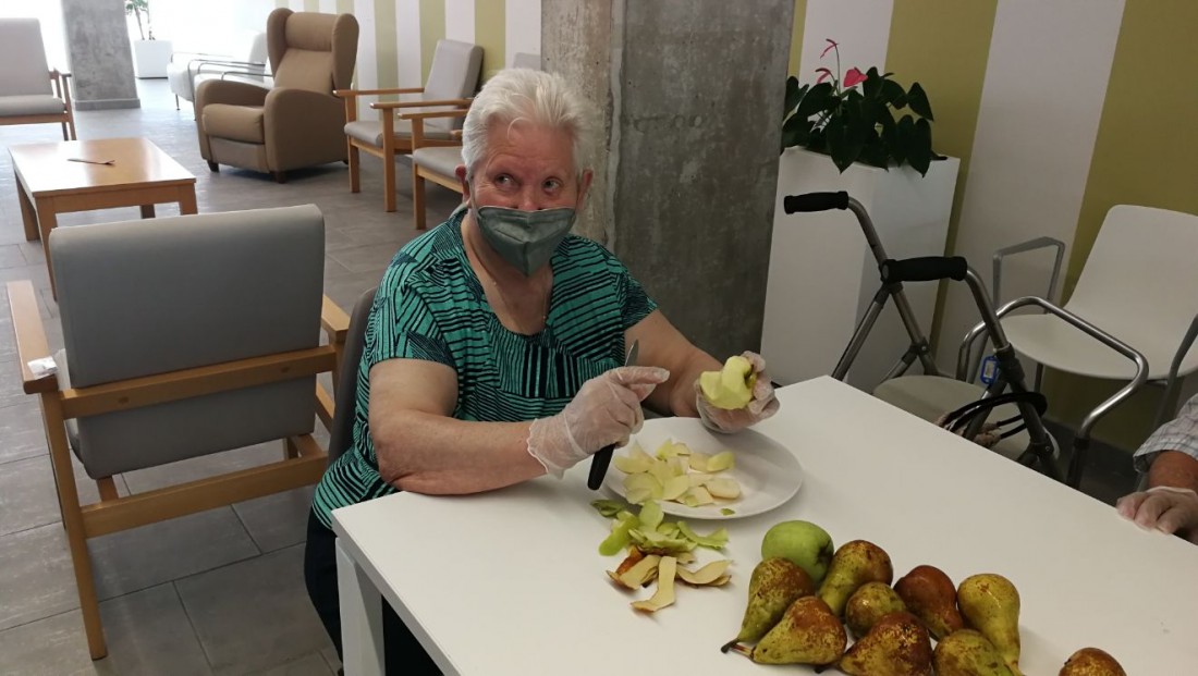 Pelem i tallem la fruita per preparar el berenar. Ens agrada ajudar en tot el que podem!!