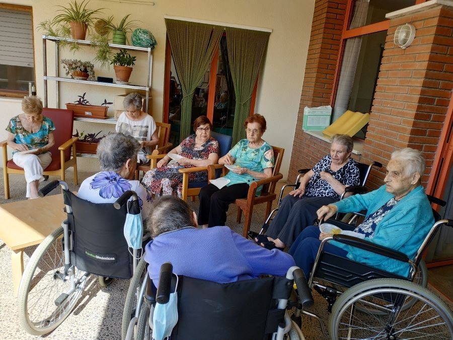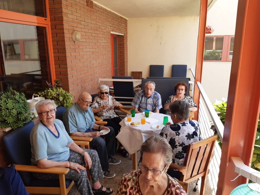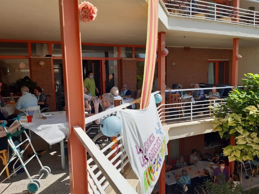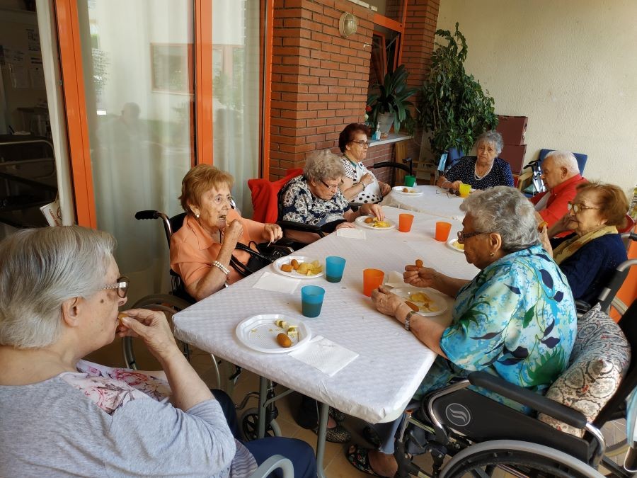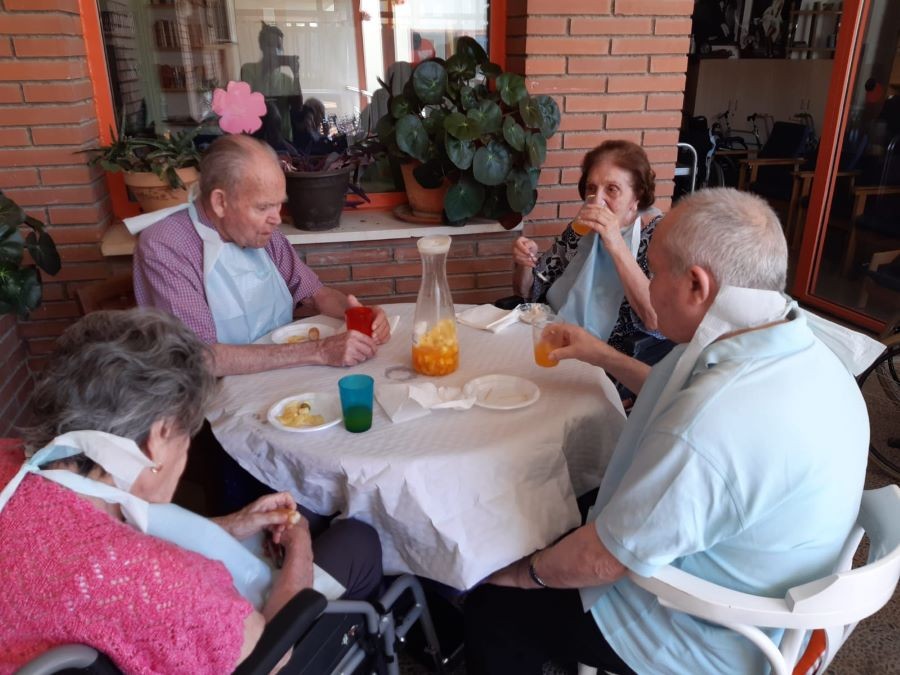Avui abans de dinar hem fet vermut de festa major amb sangria a les terrasses, acompanyats de música! Ah, per cert, i de dinar em menjat paella de peix amb gelat!