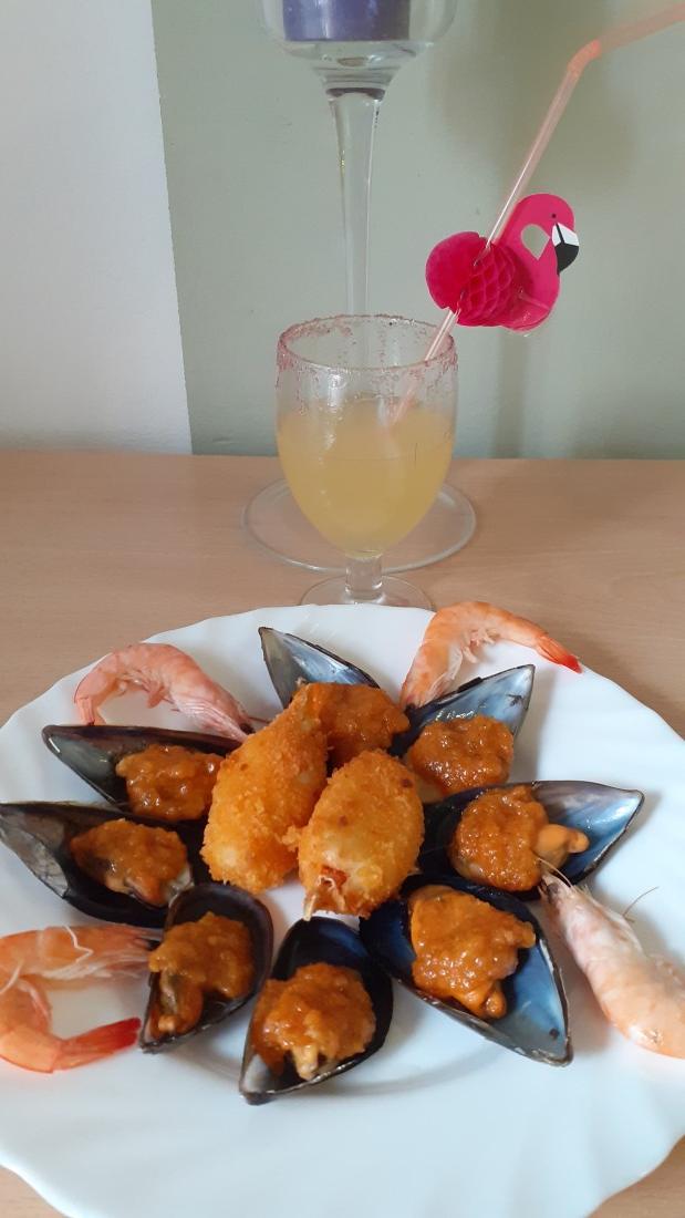 Primer plat: Còctel de cava i Musclos a la Marinera