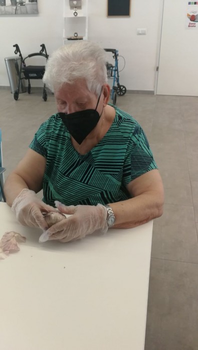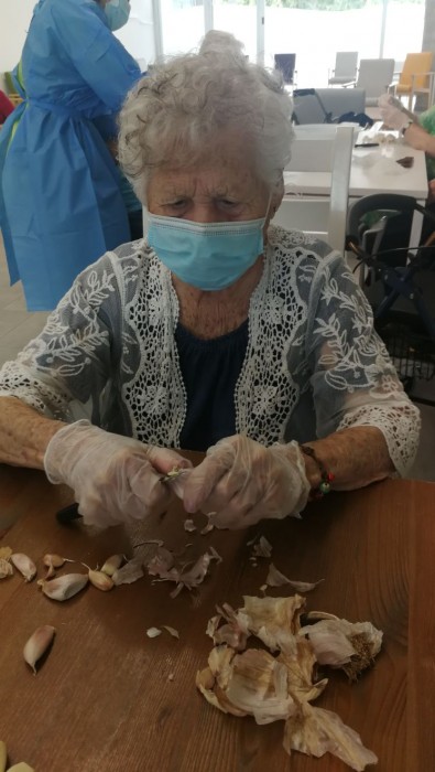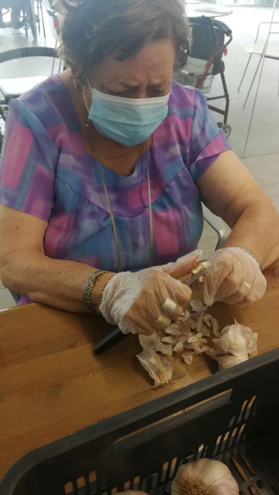 Avui en el taller de cuina, hem estat pelant i tallant alls per preparar el dinar.