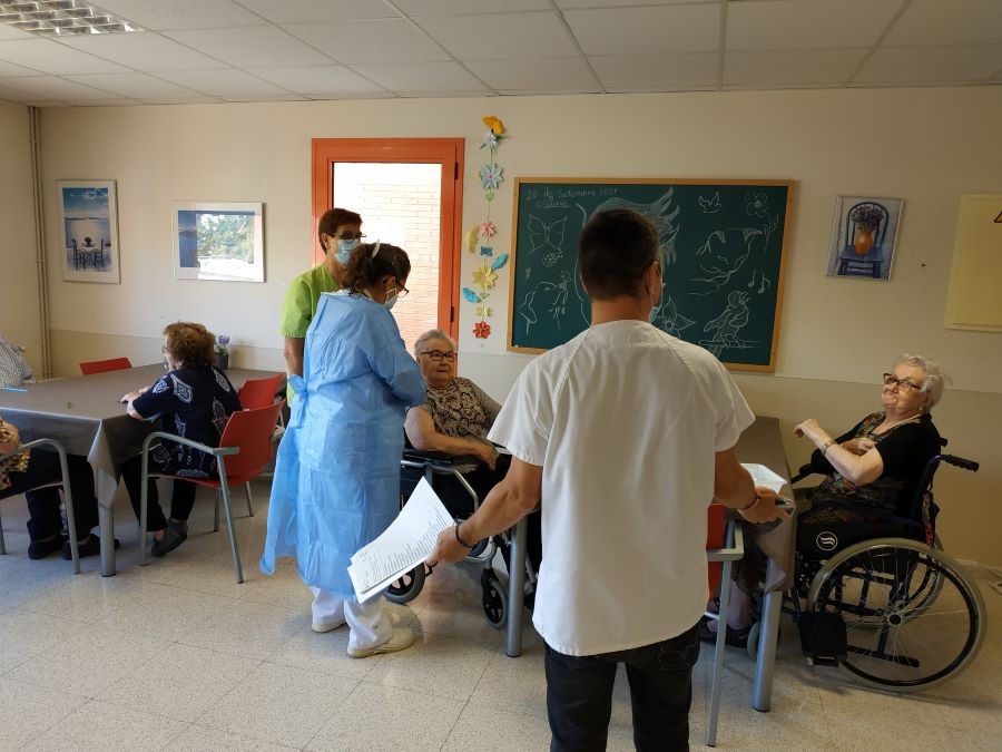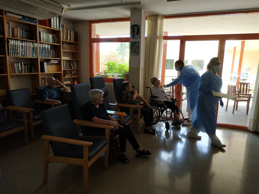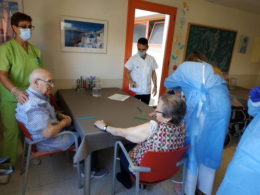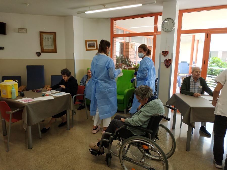 Avui al matí hem sortit a prendre la fresca i ens hem creuat als companys del segon pis! Hem fet taller d'estimulació amb la Treballadora Social del nostre centre i ens van vingut a posar la tercera vacuna contra el coronavirus!