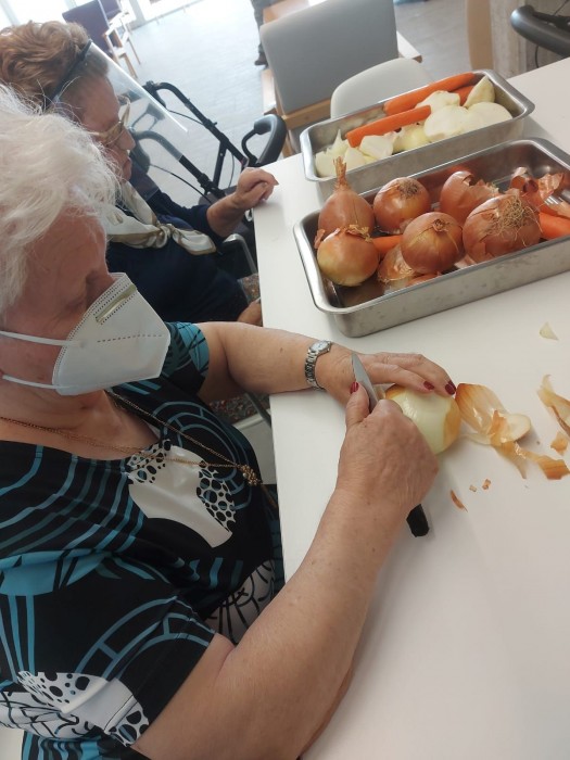 En el taller de cuina, pelem i tallem les verdures per al dinar!!