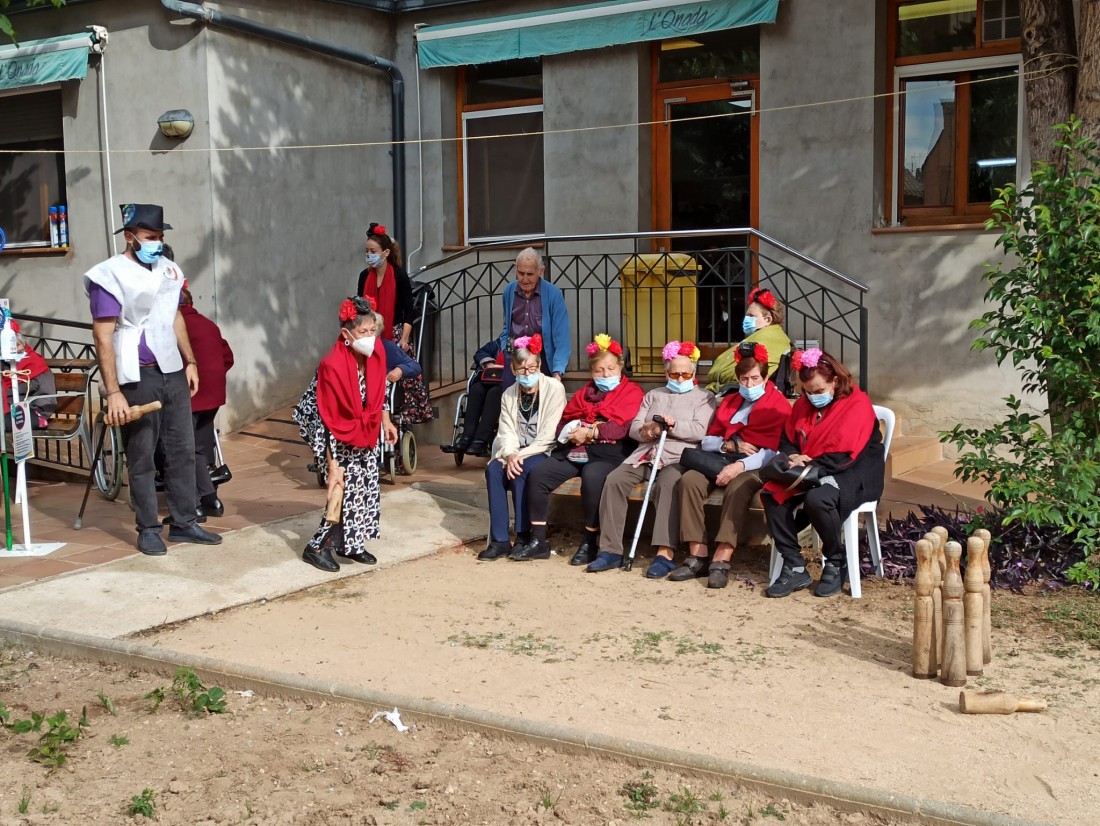 Tothom treballant per a que surti bé la festa i fent les bitlles al pati!