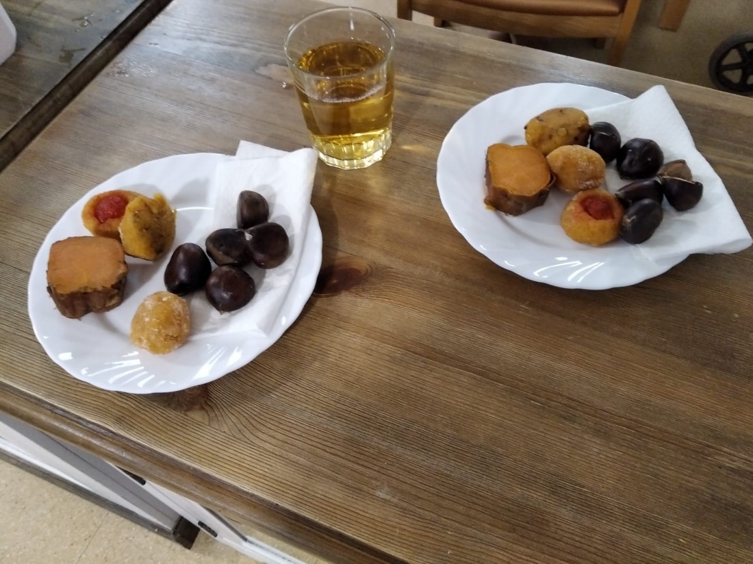 Aquesta tarda els Residents de la Residència l'Onada han celebrat la Castanyada, amb un menjar típic, panellets, castanyes i Moniato, tot seguit han escoltat diferents tipus de música hi han escoltat diferents poemes de la tardor conjutament amb endevinalles de la tardor i de la Castanyera.