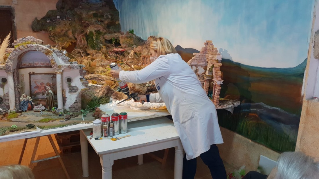 Ahir vam anar a casa l'Anna de Pino a veure com es fa el pessebre . Ens va explicar com el fa, amb quin material, com l'utilitza... Ens ha dit que aquest pessebre costa dos mesos de fer-lo. També ens ha ensenyat els cistellets de palla, els canyissos, la verdura, que ella fa a mida petita.