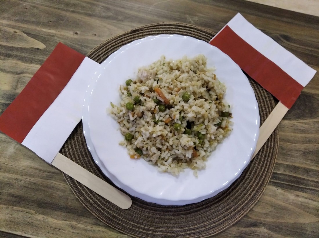 Avui hem degustat un dels plats més típics: Nasi Goreng. Està compost per arròs fregit, pollastre, verdures, gambes i ou.