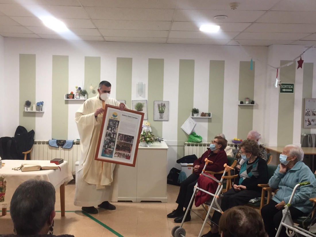 Aquesta setmana Mossèn Lluís ha vingut a la residència no només per a fer la Missa setmanal, sinó que a més, ens ha beneït un nen Jesús i un projecte de vida, cortesia de l'Onada que es va fer amb molt de carinyo per a una de les nostres residents.