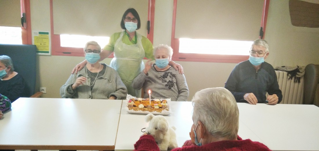 Us compartim les fotos de l'aniversari de la Mercè, que en va celebrar 82! La seva família li ha portat aquest pastís deliciós. Per molts anys!